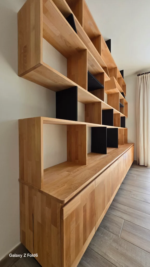 Chaque meuble que nous créons est unique, réalisé selon vos spécifications et vos envies. De la sélection des matériaux à la finition, nous produisons des meubles de haute qualité qui s’intègrent parfaitement dans votre intérieur. Nos réalisations incluent des tables, des bibliothèques, des placards, ainsi que des éléments sur mesure tels que des plans de travail, des claustras, et des habillages muraux. En tant que menuisiers à Grenoble, nous transformons vos idées en créations concrètes, alliant esthétique et fonctionnalité pour chaque projet, que ce soit pour un espace de vie, une cuisine ou un bureau etc..