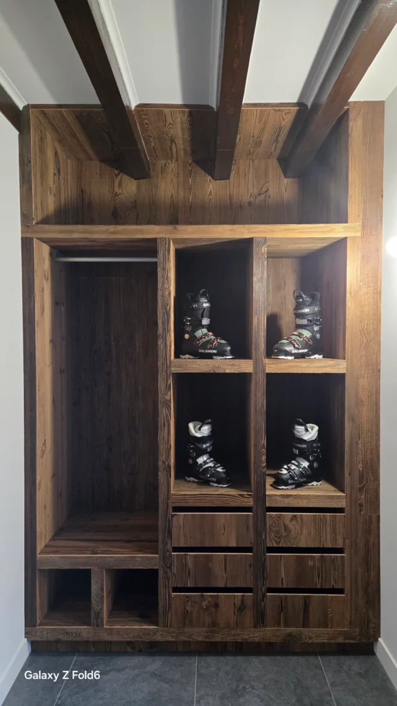 Meuble à ski en vieux bois